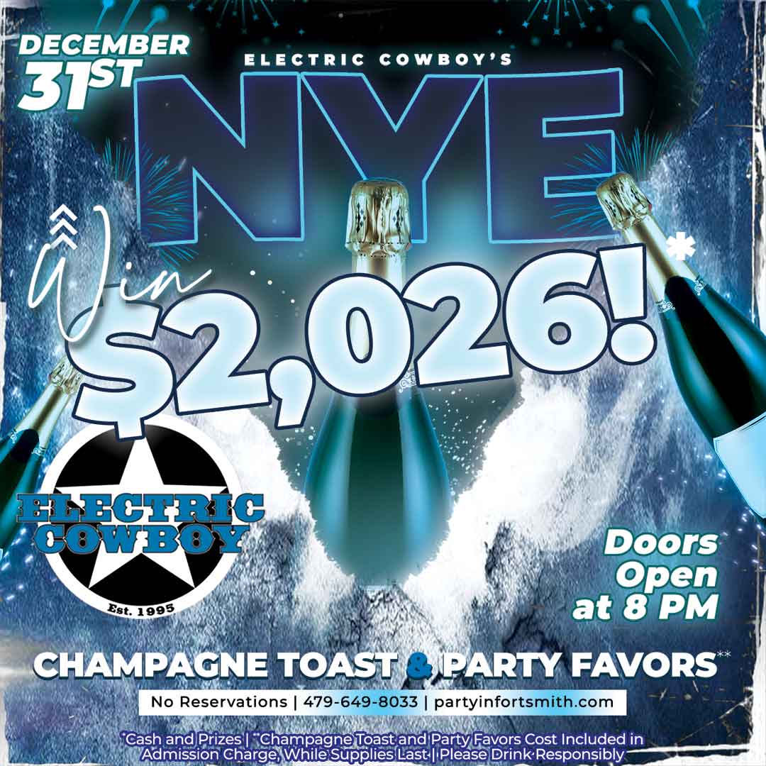 Electric Cowboy Fort Smith is ending 2025 with a bang and launching 2026 in true River Valley style. Join us on New Year’s Eve, December 31st, for one of the biggest parties of the year. This celebration packs everything you want in a midnight countdown: great music, a lively crowd, ice-cold drinks, and a chance to walk into the new year with extra cash in your pocket.